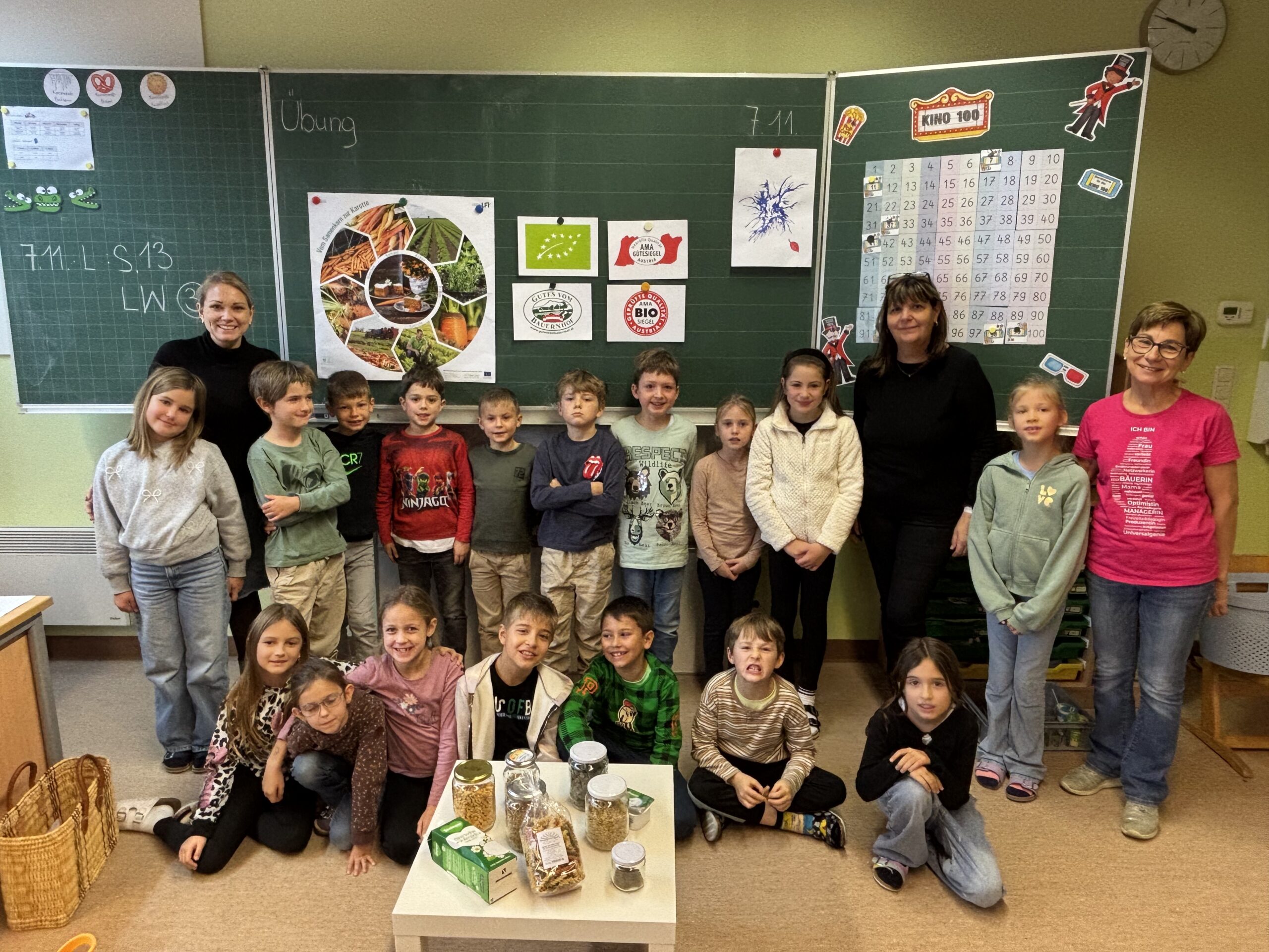 Am 7. November besuchte uns Elfi Obendrauf und erzählte den Kindern aus der 2. Klasse viel über das Leben am Bauernhof, den Anbau von Karotten und die Bedeutung von Gütesiegeln auf Lebensmitteln.