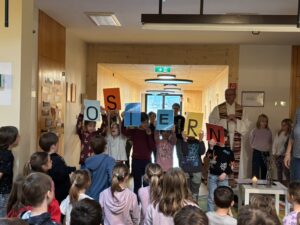 Am Donnerstag vor den Osterferien versammelte sich die gesamte Schulgemeinschaft für unseren Ostergottesdienst in der Aula, um sich gemeinsam auf die Osterzeit einzustimmen. Unser Pfarrer segnete unsere Schülerinnen und Schüler und richtete wertvolle Worte an alle Anwesenden. Musikalisch wurde der Gottesdienst von unseren Kindern gestaltet, die mit ihren Beiträgen eine besonders stimmungsvolle und feierliche Atmosphäre sorgten.