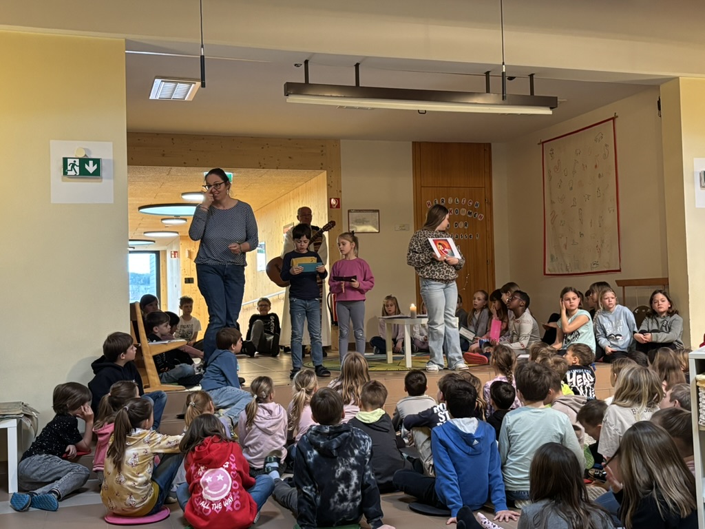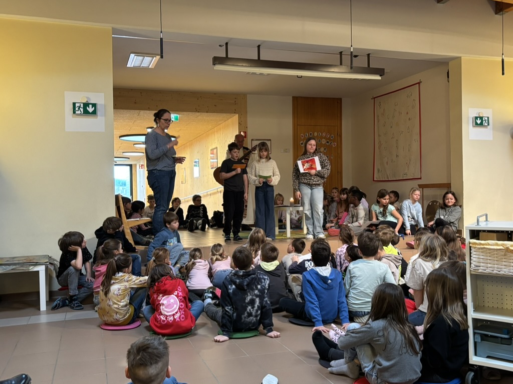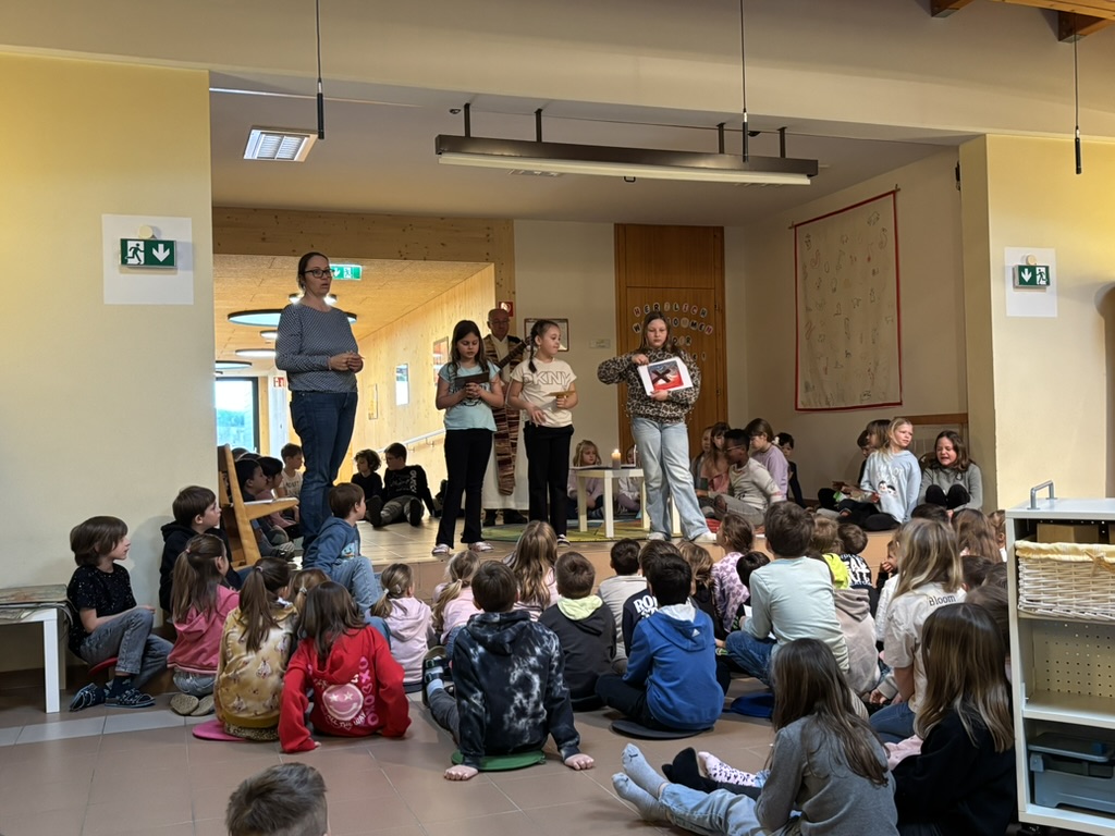 Am Donnerstag vor den Osterferien versammelte sich die gesamte Schulgemeinschaft für unseren Ostergottesdienst in der Aula, um sich gemeinsam auf die Osterzeit einzustimmen. Unser Pfarrer segnete unsere Schülerinnen und Schüler und richtete wertvolle Worte an alle Anwesenden. Musikalisch wurde der Gottesdienst von unseren Kindern gestaltet, die mit ihren Beiträgen eine besonders stimmungsvolle und feierliche Atmosphäre sorgten.