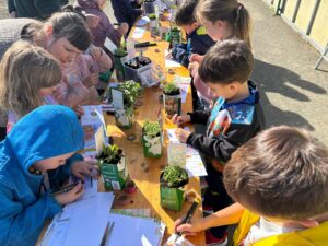 Am Samstag den 18.4.2026 findet ein Pflanzentausch und Kaufmarkt organisiert von der Gemeinde St. Georgen an der Stiefing und der KLAR! Stiefingtal statt. Im Vorfeld zu diesem Event fand an unserer Volksschule am Dienstag den 7.4.2026 ein kleiner Exkurs in die Pflanzenwelt statt, angeleitet von Frau Elisabeth Neubauer, Frau Andrea Winkelmeier und Herrn Ing. Thomas Gritsch. Gemeinsam mit unseren Schülerinnen und Schülern wurden Pflanzentöpfe aus Tetrapacks hergestellt und gestaltet. Die Kinder konnten aus einer Vielzahl an Pflanzen eine Pflanze in ihren eigenen Pflanzentopf setzen und mit nach Hause nehmen.