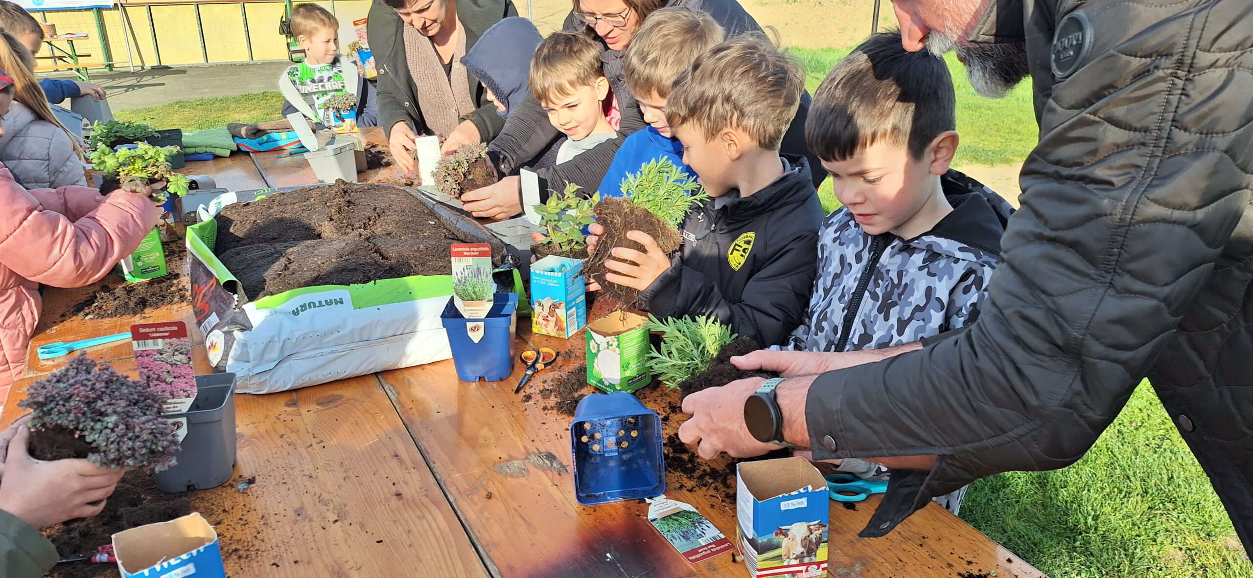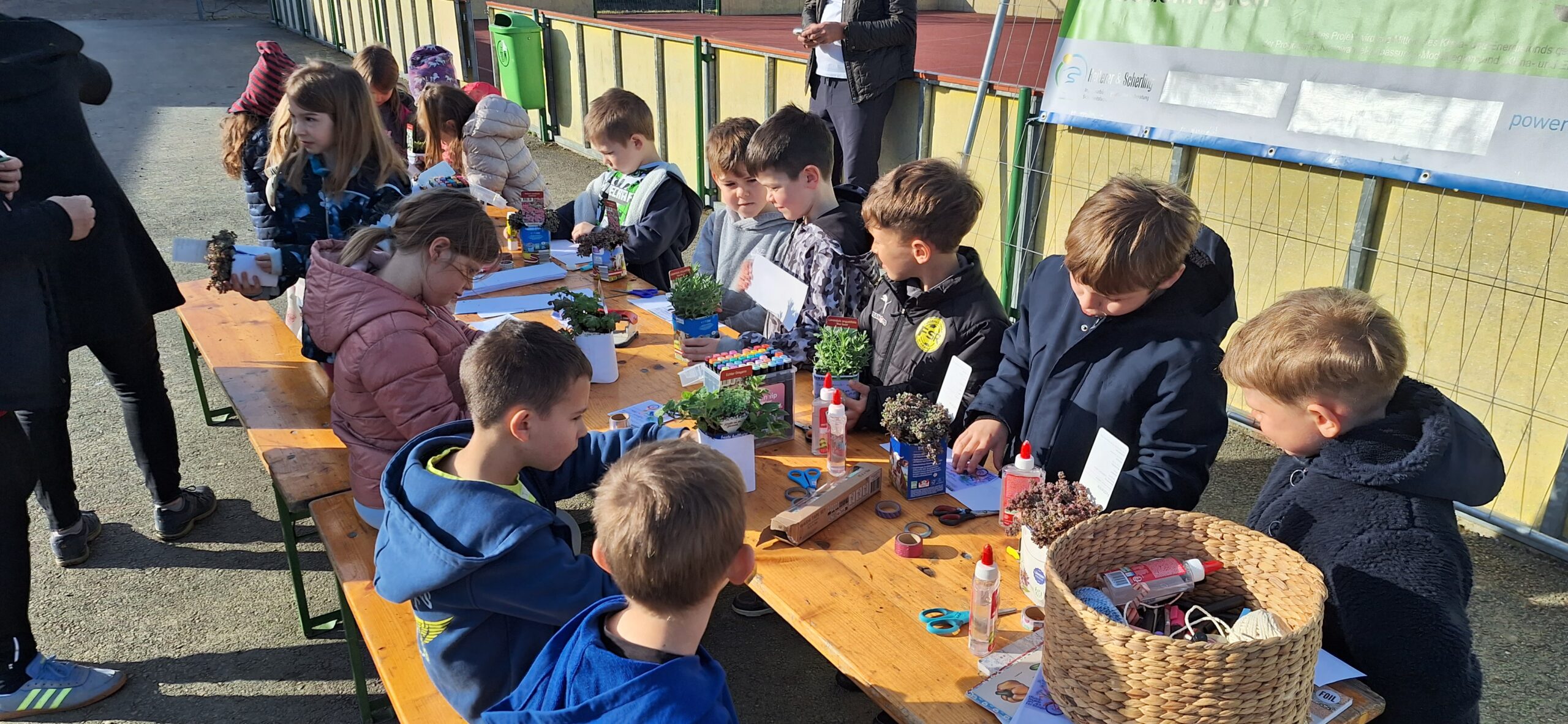 Am Samstag den 18.4.2026 findet ein Pflanzentausch und Kaufmarkt organisiert von der Gemeinde St. Georgen an der Stiefing und der KLAR! Stiefingtal statt. Im Vorfeld zu diesem Event fand an unserer Volksschule am Dienstag den 7.4.2026 ein kleiner Exkurs in die Pflanzenwelt statt, angeleitet von Frau Elisabeth Neubauer, Frau Andrea Winkelmeier und Herrn Ing. Thomas Gritsch. Gemeinsam mit unseren Schülerinnen und Schülern wurden Pflanzentöpfe aus Tetrapacks hergestellt und gestaltet. Die Kinder konnten aus einer Vielzahl an Pflanzen eine Pflanze in ihren eigenen Pflanzentopf setzen und mit nach Hause nehmen.