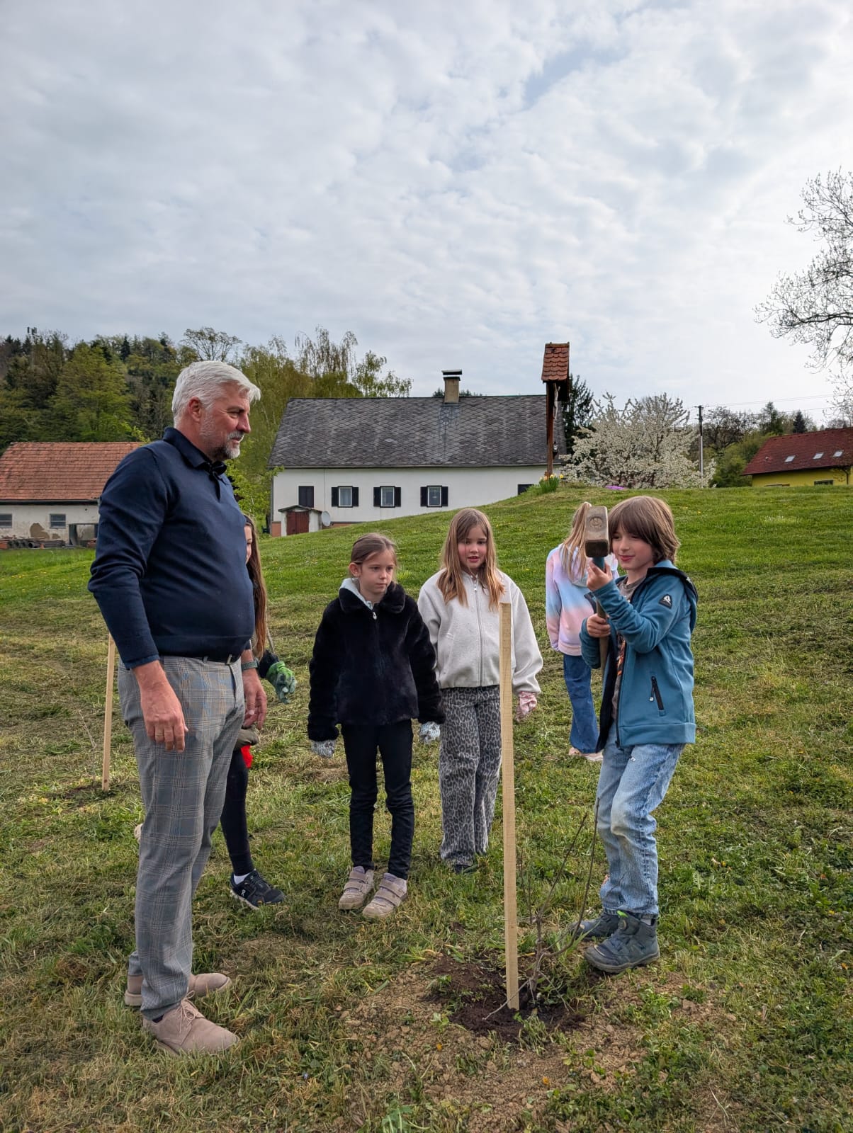 Am 14. April durfte die 2. Klasse unserer Volksschule ein ganz besonderes Erlebnis genießen: Gemeinsam mit unserem Bürgermeister, der KLAR Stiefingtal und dem BILLA St. Georgen/Stiefing setzten die Schülerinnen und Schüler Sträucher und leisteten damit einen wertvollen Beitrag für unsere Umwelt.